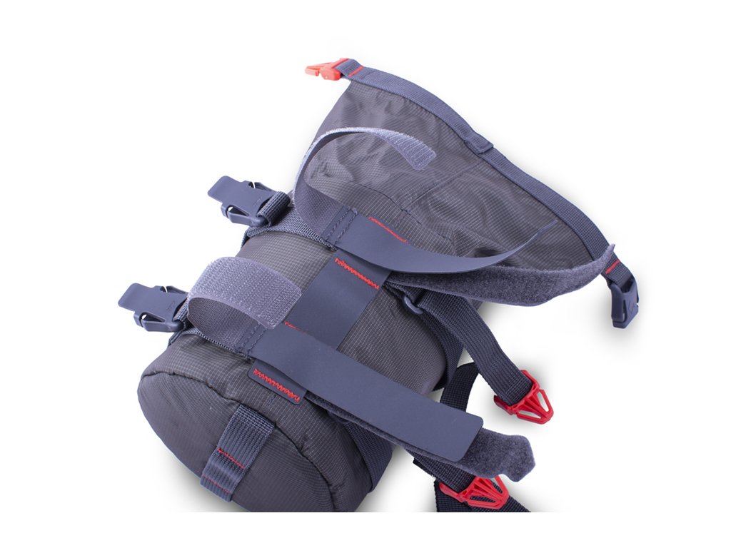 Polypropylene straps (100% recyclable) have a rough structure and do not slip in the buckles. Stressed seams are secured with the so-called Bartack stitch (zigzag), all yarns used are Polyester with a large fiber diameter for maximum strength.