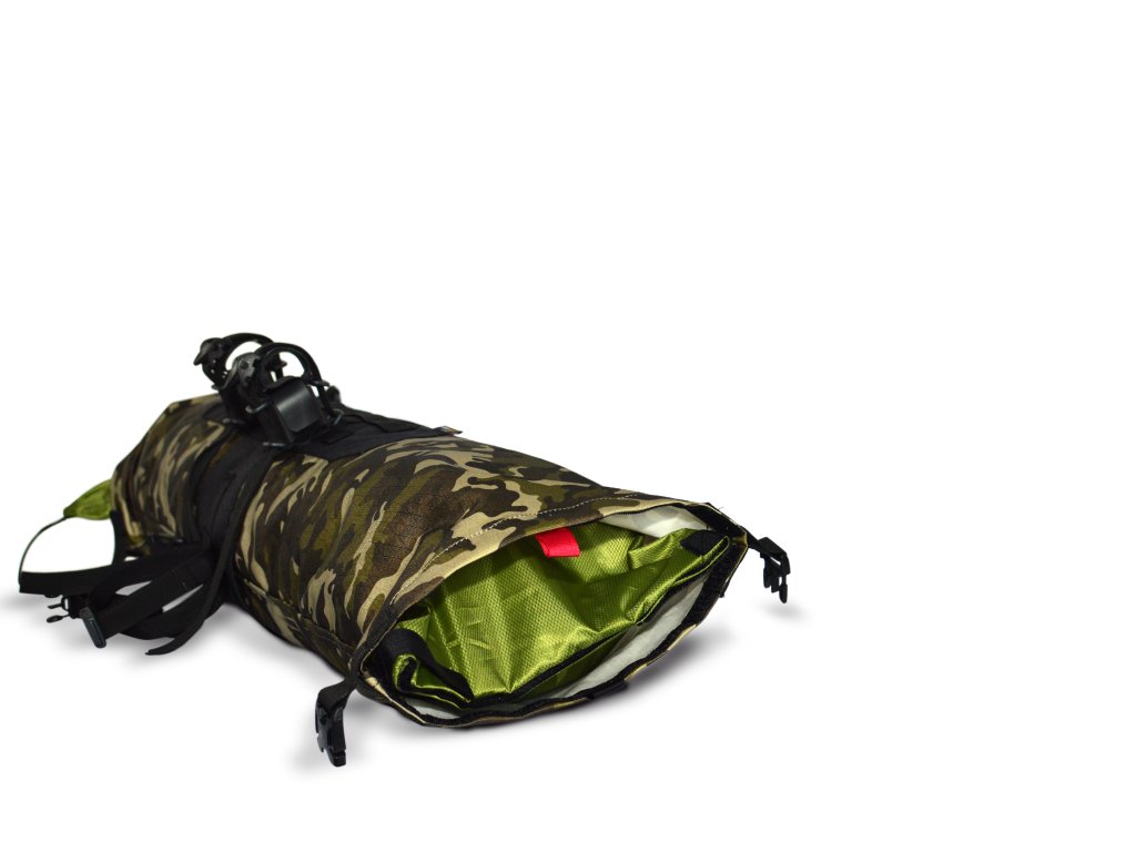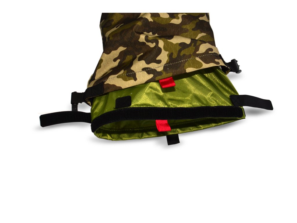 Použitý hlavní materiál Cordura Ecomade Ripstop (PU zátěr 1500mm H20), odolná tkanina vyrobená z recyklovaných PET lahví. Součástí brašny je vyjímatelná vodotěsná vložka ( zátěrovaná Nylon ripstop textilie, PU 5000mm s podlepenými švy ), která zaručeně udrží převážený obsah brašny v suchu.