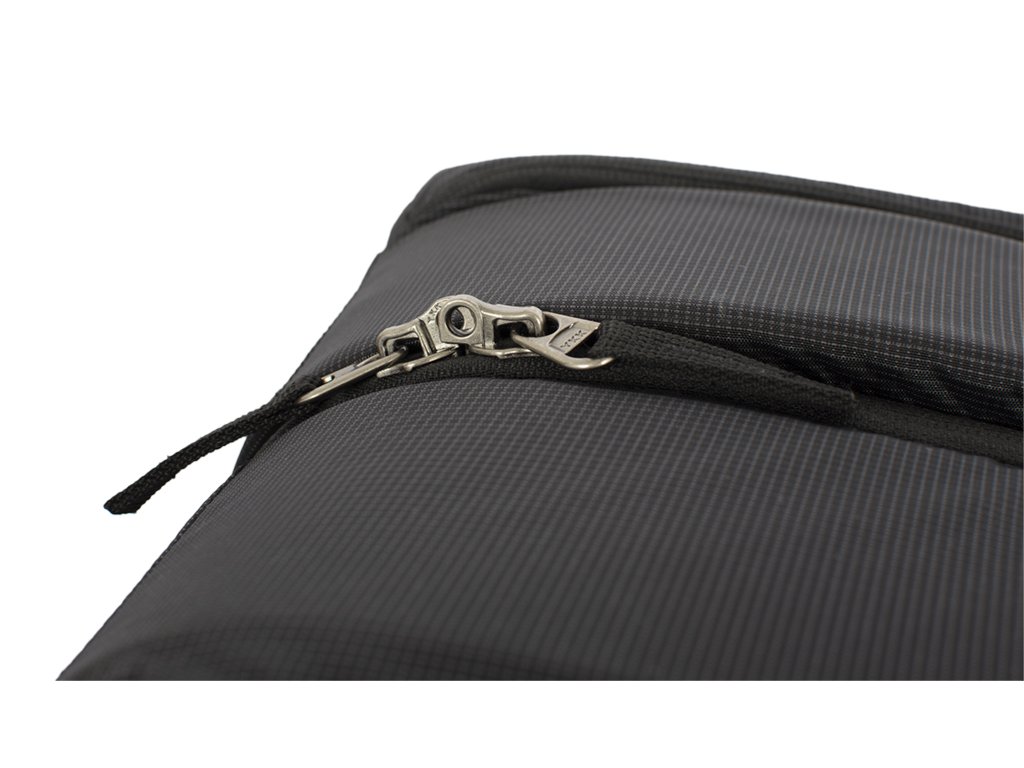 - YKK Zippers are equipped with pairs of riders with loops to be locked during the transport