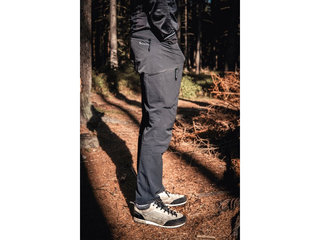 Materiál tvoří odolná strečová tkanina Nylon 6.6, která vyniká kombinací pevnosti, pružnosti a prodyšnosti. Díky příměsi elastanu a propracovanému střihu kalhoty neomezují pohyb ani při dynamických aktivitách. V oblasti kolen jsou anatomicky tvarované, takže lépe sedí i při sportovním nasazení. Všechny zipy jsou od renomované japonské značky YKK, což zaručuje jejich dlouhou životnost.