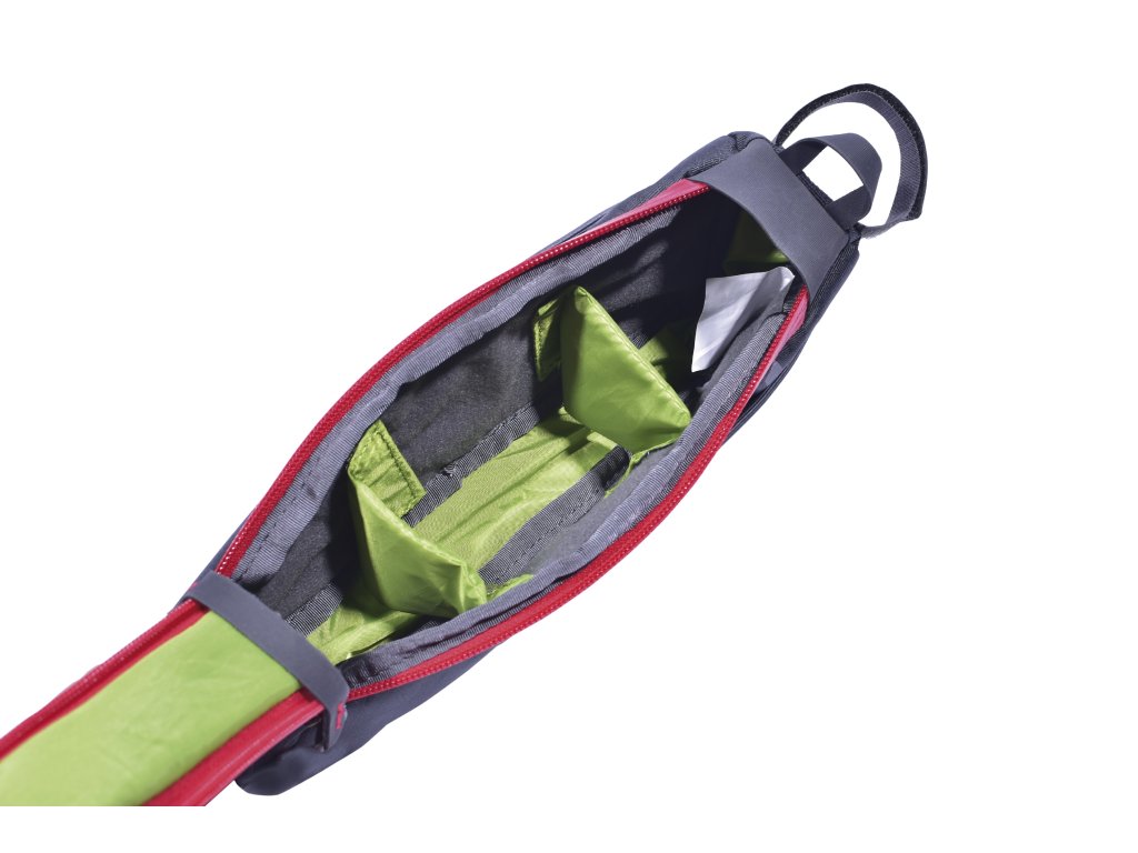 Snadný přístup do brašny díky voděodpudivým zipům YKK. Jezdce zipů jsou spojené Hypalonovým poutkem pro možnost otevření obou zipů současně jednou rukou.
