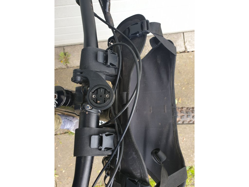 Bezpečné připnutí k řídítkům zajišťuje dvojice distančních podložek, takže se nemusíte bát o páčky a bowdeny. Popruhy se suchým zipem zajišťují jednoduchost a jistící popruhy se sponami zase spolehlivost uchycení.
